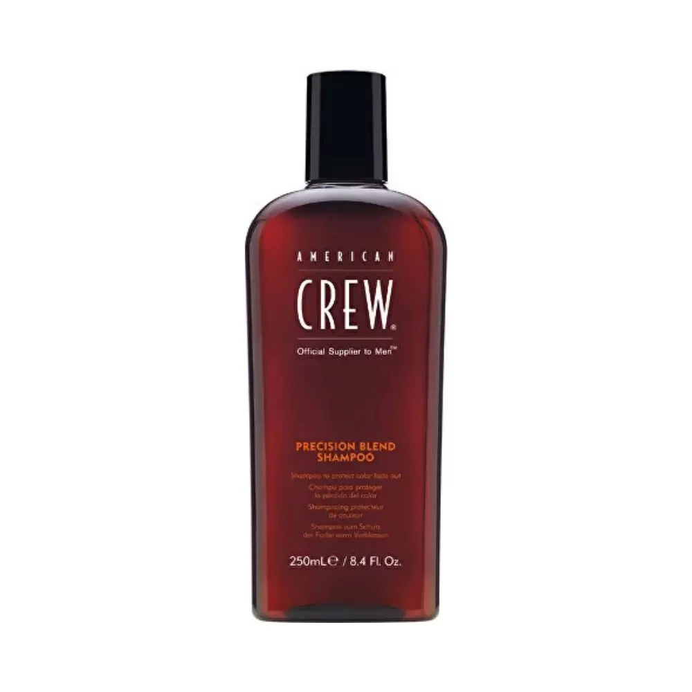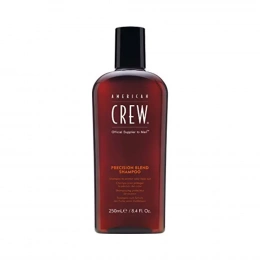 American Crew Precision Blend sampon, amelyet az ősz árnyalatú haj mosására terveztek. Ez az innovatív formula számos tápanyagban gazdag összetevőt tartalmaz, beleértve a búza aminosavakat, a magas rozmaringlevél-kivonat tartalmú antioxidánsokat és az UV-szűrőket a szín fakulás elleni védelmére.