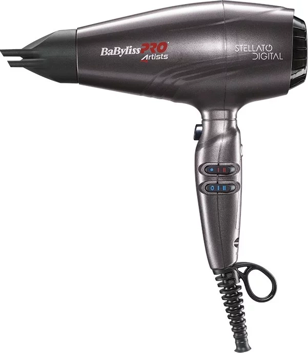 A Ferrari márkával együttműködve készült ez a BaByliss PRO 4rtists Stellato Digital BAB7500IE borbély hajszárító. Ez a hajszárító nemcsak kiváló minőségű és nagy teljesítményű motorral rendelkezik, amely akár 10 évig is tart.000 óra, de alacsony súlyával is lenyűgöz – 396 g. A hajszárító ergonomikus fogantyúval van felszerelve a kényelmes használat érdekében. Alacsony súlyának és tökéletes kiegyensúlyozottságának köszönhetően ez a készülék alkalmas fodrászszalonok számára.