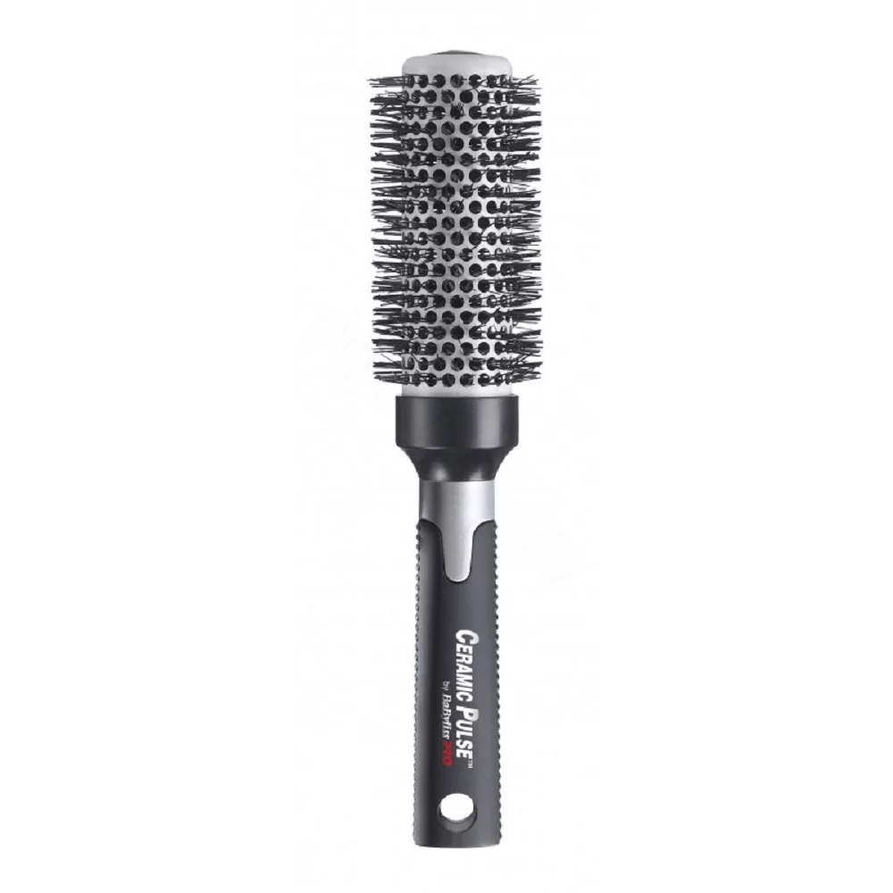Ez a professzionális, Ø32 mm-es kerek kerámia hajkefe a kerámia felületének köszönhetően antisztatikus hatást ér el, könnyen siklik a hajon, így kevésbé terheli azt.