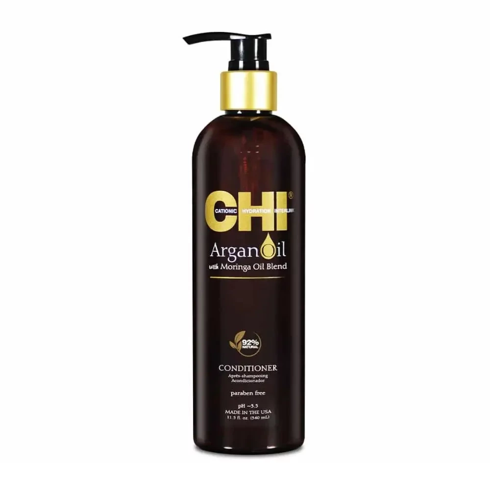 A CHI Argan Oil Plus Moringa Oil kondicionáló argánolajjal és moringa olajjal gazdagított, amelyek vitaminokban és antioxidánsokban gazdagok.