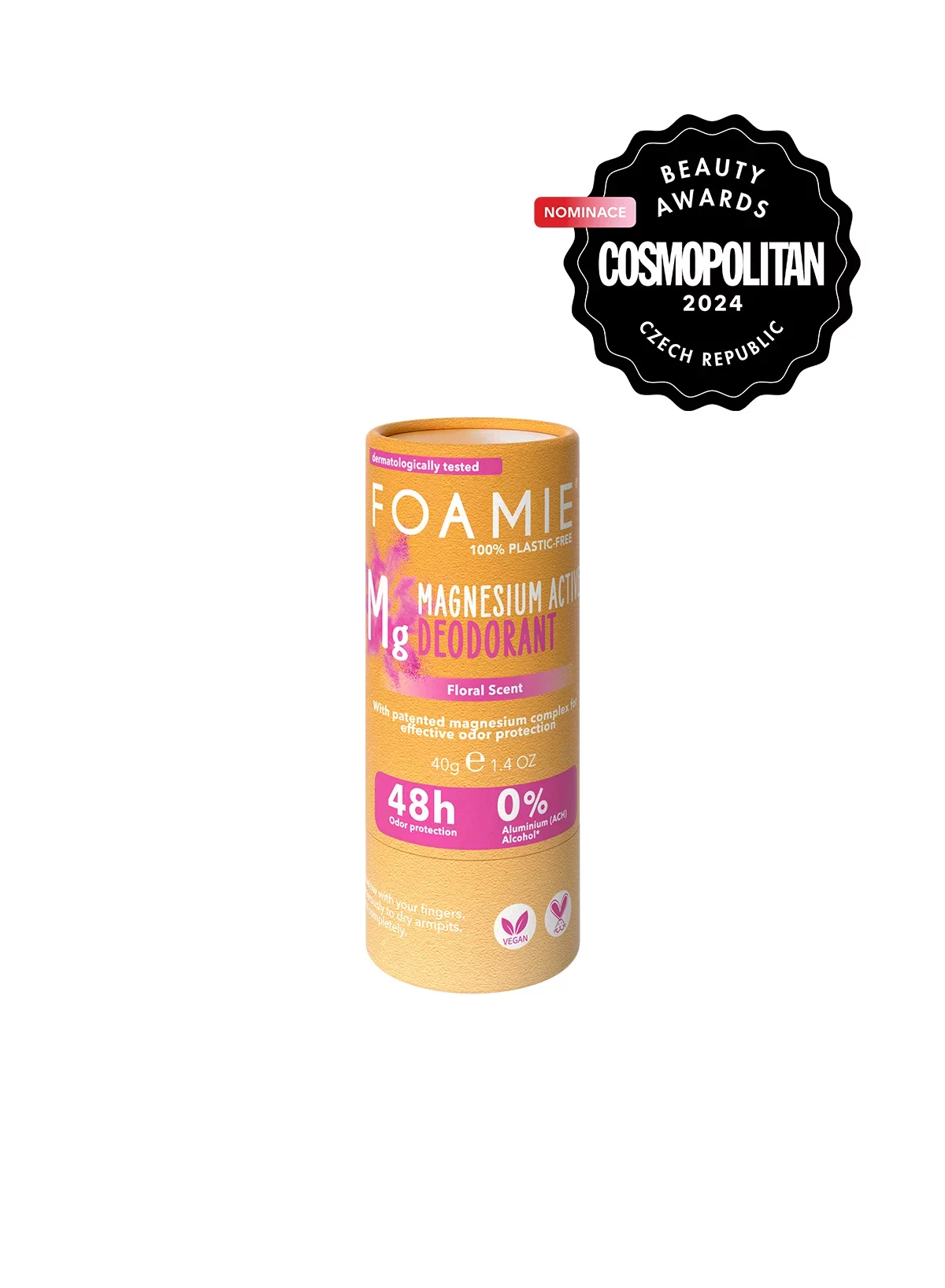 Tuhý deodorant s patentovaným komplexem hořčíku pro účinnou ochranu proti zápachu (až do 48 hodin) zabezpečí celodenní svěžest. Neobsahuje alkohol, neutralizuje zápach a je zvláště jemný k pokožce podpaží. Hořčík redukuje bakterie, které mění pot v nepříjemný zápach a květinová vůně zabezpečí příjemný pocit během celého dne. Tuhé deodoranty bez alkoholu jsou vyrobeny 100% bez plastů a fungují bez nutnosti namočení ve vodě. Stačí odstranit kryt, jemně prsty zatlačit zespodu a aplikovat přímo na pokožku podpaží. Chvíli počkejte na absorpci produktu. Produkty jsou hypoalergenní, nejsou testované na zvířatech a složením jsou vhodné i pro vegany.