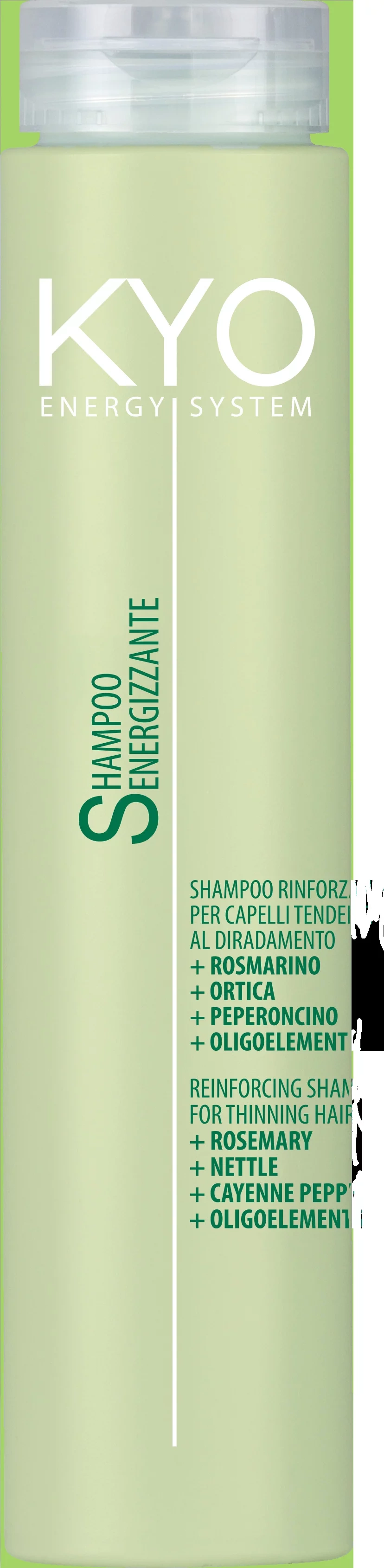 Az ENERGYSYSTEM sampon alkalmas hajhullás és hajritkulás esetén, valamint megelőzésként is, oligoelemekkel, rozmaringgal, csalánnal és chili kivonatokkal gazdagítva. Energysystem erősítő sampon, tisztítja és helyreállítja a fejbőr egyensúlyát, valamint segít a hajritkulás megelőzésében. A serkentő anyagok segítenek táplálni és erősíteni a hajat a gyökértől kezdve. Frissesség és kényelem érzetét nyújtja a bőrnek.