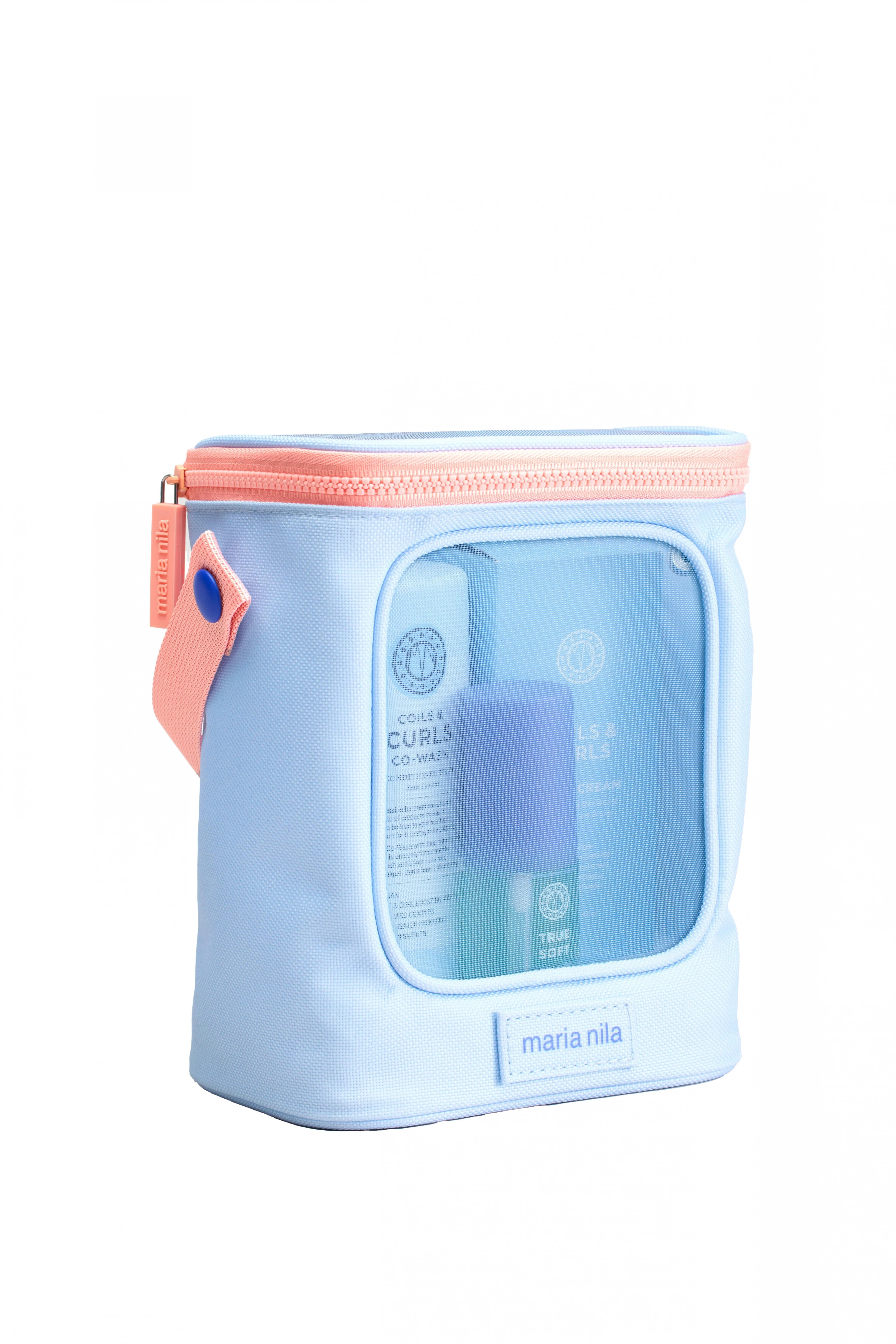 A Coils & Curls Beauty Bag tökéletes választás göndör és hullámos hajra. Ez a multifunkcionális kozmetikai táska átlátszó hálóval biztosítja a tartalom tökéletes áttekinthetőségét, és 100%-ban újrahasznosított anyagból készült. Tartalmaz Co-Wash-t és krémes olajat a maximális hidratálásért, valamint exkluzív, limitált argánolajat, amely támogatja a fürtjeid természetes szépségét. 100% vegán termék