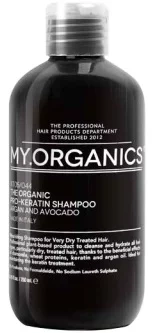 Az ORGANICS Keratin a keratin rekonstrukciós képességeinek köszönhetően egészséget és ragyogó fényt ad a kémiai termékeknek kitett sérült hajnak. A teljes sorozat használatával mélytisztítást érünk el a fejbőrön, ezáltal támogatjuk és felgyorsítjuk a regenerációt.Tápláló sampon MY.ORGANICS The Organic Pro-Keratin Sampon Argánnal és Avokádóval nagyon száraz és vegyileg károsodott hajra. Professzionális használatra szánt termék, növényi alapú, alkalmas minden rendkívül száraz és vegyileg károsodott haj mosására és hidratálására a kamilla és a búzaprotein jótékony hatásainak köszönhetően. A vitaminok kiegyensúlyozott koncentrációjának köszönhetően mély táplálást és regenerációt biztosít a stresszes haj számára. A samponban található selyemkivonatok és értékes illóolajok selymes érzetet és simább, bársonyosabb megjelenést kölcsönöznek a hajának. Ideális termék a keratinos kezelés hatásának meghosszabbítására.