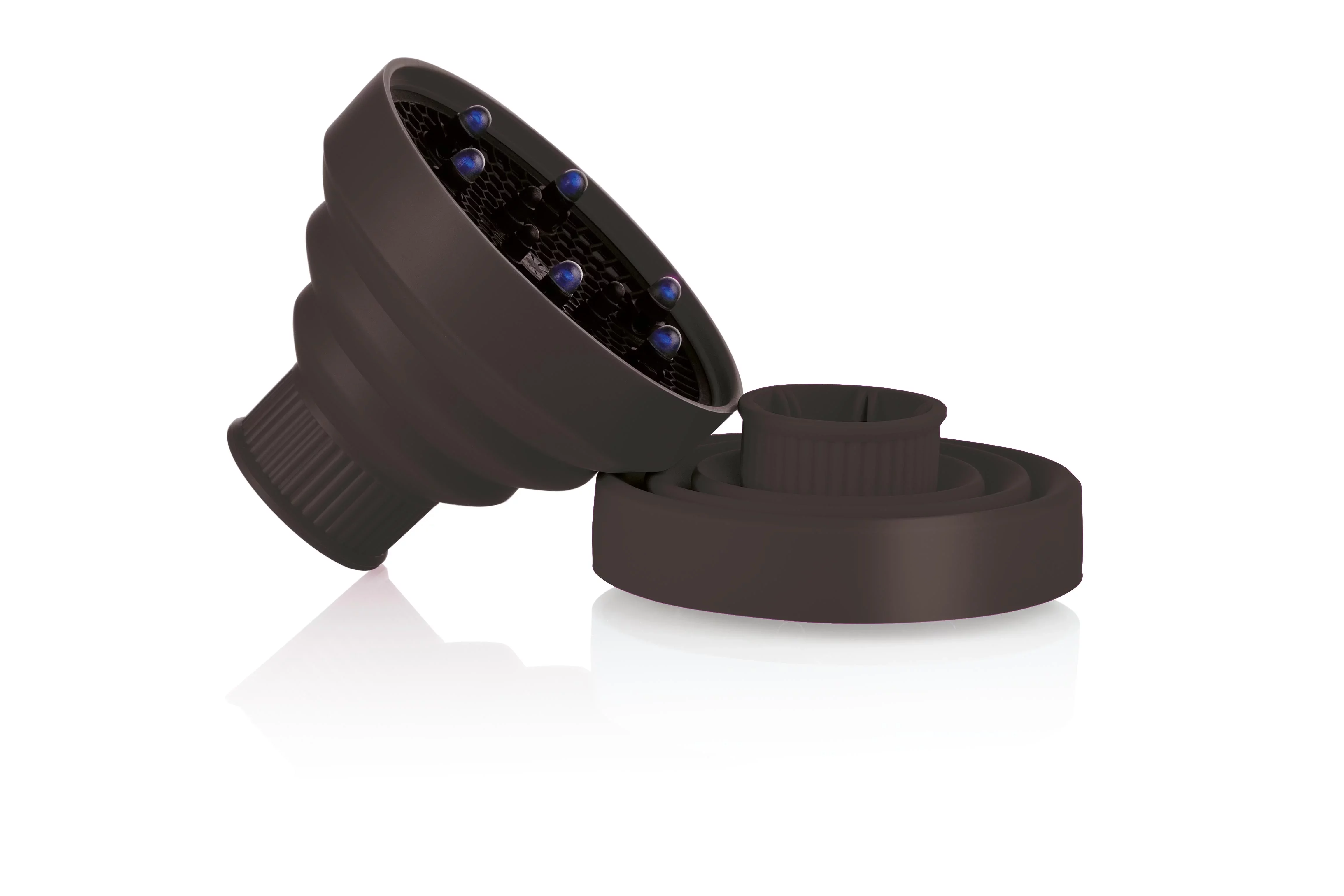STHAUER - Univerzális szilikon diffúzor fekete. Gyakorlati és gyors összeszerelés. A diffúzor hőálló szilikonból készült. Lehetséges kompakt formára hajtogatni. Méretek: 5 cm - 5.8 cm, 13.5 cm - 11.5 cm. Fontos: rendeléskor mérje meg a hajszárító átmérőjét.