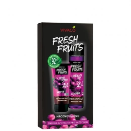 Ajándékcsomag kozmetikumokkal szőlőkivonattal a bőr és az arc mindennapi ápolásához. A friss gyümölcsös illat felélénkíti az elmét és egész nap frissességérzetet biztosít.