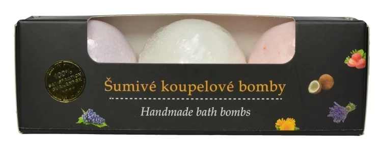 Az ajándékcsomag 3 darab pezsgő fürdőbombát tartalmaz.